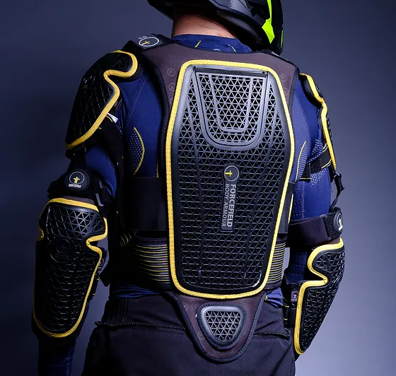 Motorcycle body armor inserts. Elbow Knee hip and back inserts mean you can upgrade your riding gear with Forcefield armour. Forcefield Body Armour specialises in Impact Protection and High Performance Clothing Systems. High-density foam paired with carbon fiber or Kevlar composite abrasion panels is the most prominent form of body armor available for motorcycle safety gear.